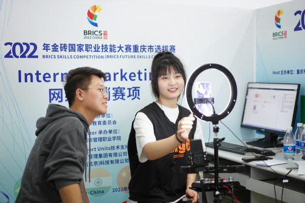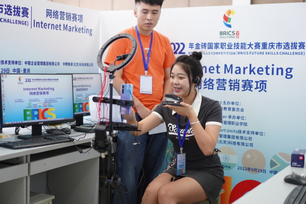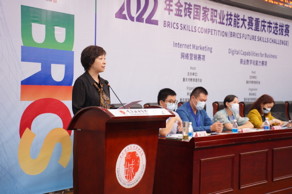 为全面贯彻教育部新颁布实施的《职业教育法》,落实习近平主席在金砖国家领导人第十三次会晤上提出的倡议精神,推动金砖国家在教育领域的深度合作交流,选拔行业新领域高水平技能选手,9月28-29日,由重庆市教育委员会主办,我校承办的2022年金砖国家职业技能大赛“网络营销”赛项与“商业数字化能力”赛项重庆市选拔赛正式开赛。重庆市教科院职成教所所长胡彦,教研员刘波、罗艳,我校副校长罗小秋,教务处、商学院相关负责同志以及参赛院校70余人出席了开赛式。