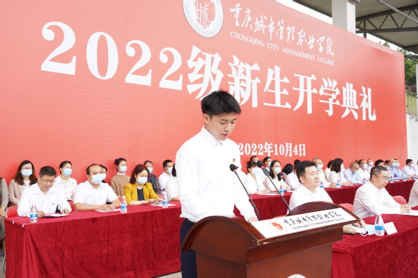 民政与社会治理学院徐慕林同学作为高年级学生代表发言。他结合自己在重庆城管院的学习生活经历,分享了多次参与各类社会实践活动的难忘时光,以及获得市级奖项的宝贵经历。他勉励学弟学妹们要踏实埋头苦干,不断砥砺奋进,以青春之我、奋斗之我,为民族复兴铺路架桥,为祖国建设添砖加瓦!