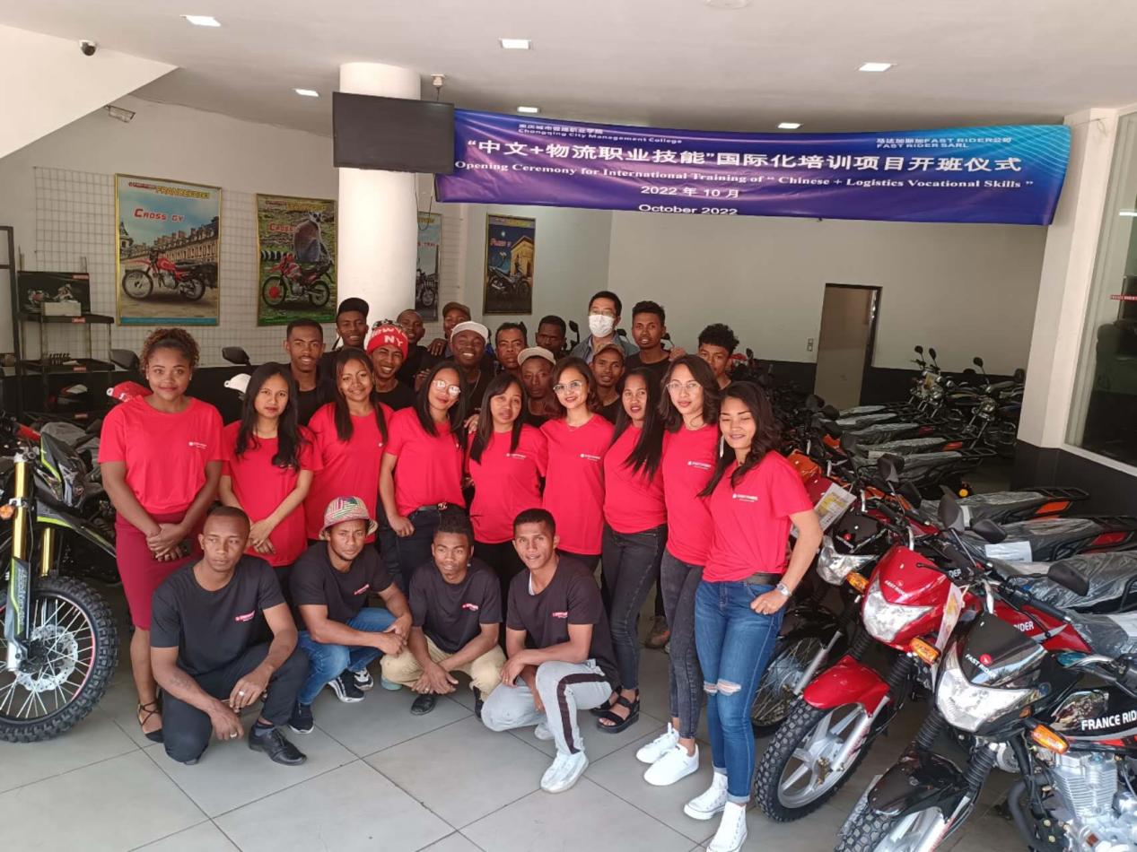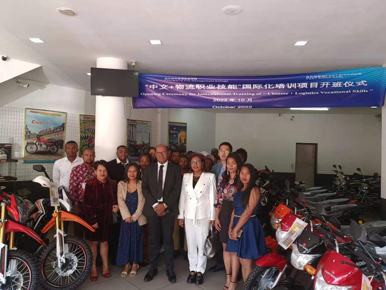 塔那那利佛大学孔子学院老师兰德里亚曼多索·托阿维纳、FAST RIDER公司总经理李利军、重庆斯彦科技有限公司经理吕飞豹以及培训班教师和学员代表等参加开班仪式。