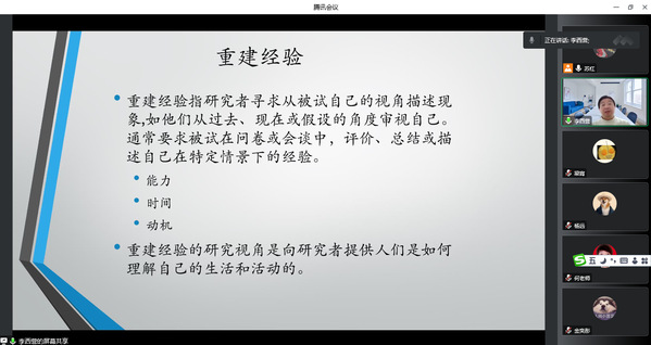 10月24日,陕西师范大学现代教学技术教育部重点实验室教授李西营应邀为我校作题为《日常经验取样法在老年人生活质量研究中的应用》的线上讲座。来自智慧康养学院、通识教育学院、民政与社会治理学院的心理学教师及部分“机构失能失智老年群体生命质量提升产品研发创新团队”教师共同聆听了该场讲座。