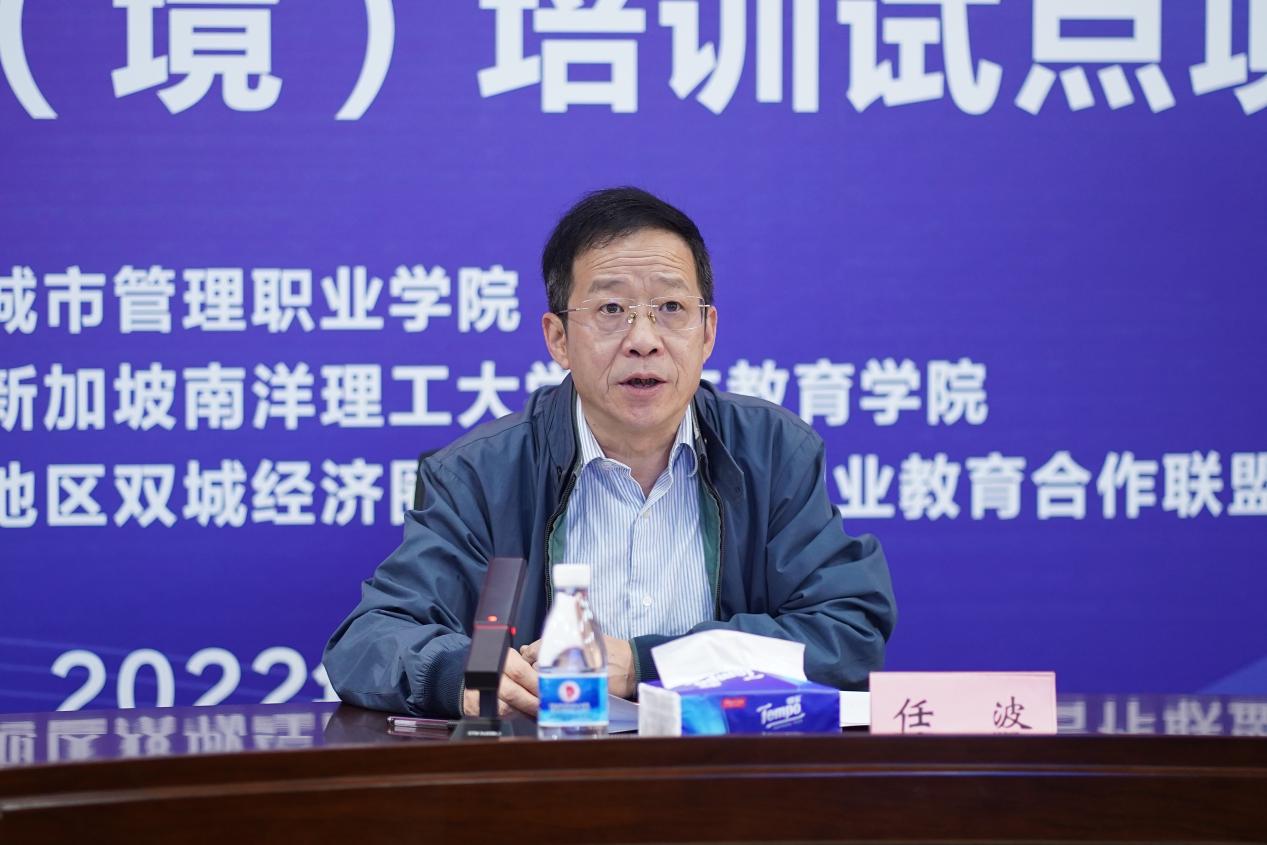 开班典礼上,任波书记代表学校对参会的领导、老师和学员们表示热烈欢迎,介绍了学校的基本情况以及近年来学校在国际化办学战略实施、服务“一带一路”建设、中外人文交流等方面取得的成绩。他强调,学校历来高度重视职教师资国际化建设,疫情前在新加坡、威尔士等设立3个海外教师工作站,牵头组织重庆高职院校教师赴海外学习研修累计200余人次。本次学校作为成渝地区双城经济圈-澜湄区域职业教育合作联盟理事长单位牵头组织成渝地区高职院校参加科技部线上出国(境)培训项目,旨在积极推动成渝两地国际化师资队伍建设,深化两地职业教育合作协同发展。他表示新加坡职业教育在世界上久负盛名,希望各位学员能够以培训此为契机,认真学习,积极借鉴新加坡职业教育经验,创新服务成渝地区职业教育高质量发展。