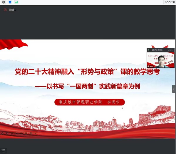 为深入学习贯彻党的二十大精神,推动二十大精神全面、及时、准确融入形势与政策课,更好发挥思政课立德树人关键课程作用,11月7日,我校应邀参加了由西南大学马克思主义学院主办的党的二十大精神融入“形势与政策”课教学五校联合备课会,会议采用线上参会方式。