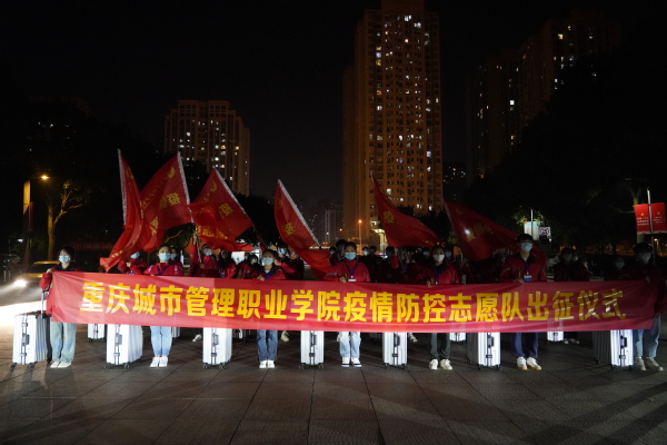 出征仪式上,学校党委副书记、校长邓明国向志愿队队长齐芳授予了重庆城市管理职业学院疫情防控志愿队队旗。队员们挥舞旗帜,气势昂扬,整装待发。