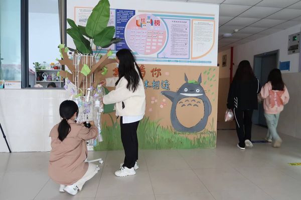 致远园四舍同学们精心准备了小巧可爱的漂流瓶,“漂流”范围遍及整个致远园四舍。活动中,通过清洗后得到的干净瓶子装进留言条制作成精美的漂流瓶。制作的都是“随机瓶”,纸条上的信息可以是对自己或他人的祝福、愿望、个人介绍,不方便给身边人说的小秘密等。学生们可以向抽到漂流瓶的Ta诉说心里话,并自愿留下自己的联系方式。同时,活动提倡以废弃塑料瓶兑换漂流瓶,避免学生乱扔塑料瓶。