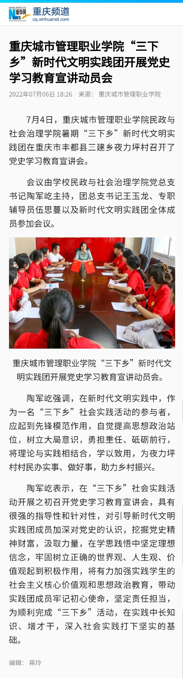 作者:民政与社会治理学院、党委宣传网工部审核发布:重庆城市管理职业学院发布者:党委宣传网工部发布时间:2022-07-07浏览次数:56