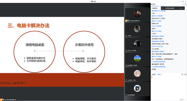 本次讲座邀请到智能制造专业群党支部书记谢祥洲进行分享。电脑如何正确开关机?如何正确使用电脑?电脑和网络卡顿怎么办?电脑故障如何排除?如何正确地清理内存空间?杀毒软件安装越多越好吗?带着一个个实际问题,谢祥洲老师将原本生硬的知识,风趣幽默地为同学们进行了讲解,针对性地讲述了电脑和手机日常使用中常出现的问题和解决办法。讲座中,同学们纷纷在评论区写下了使用中的困惑,谢祥洲老师耐心地进行解答,有效帮助同学们解决了当前使用电子设备面临的问题。