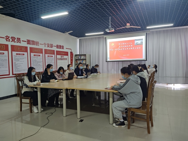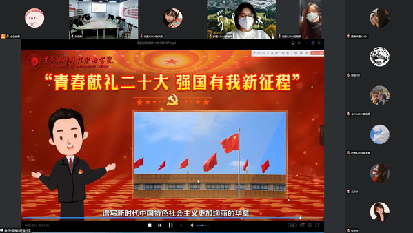 主题党日活动分为四个阶段。首先,全体参会人员共同观看了学校马克思主义学院制作的《跟着“马哥马姐”学党的二十大——大会召开与主题》微视频,重温了二十大召开的历史背景和重大意义。