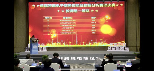 本届跨境电子商务技能及数据分析赛项教师组比赛于11月18日进行,共有来自全国各省、直辖市、自治区的92名选手参加,比赛内容主要为跨境电子商务数据处理与分析、答辩商业分析报告。考查选手对数据分析模型建立与运用、商业数据呈现、分析与解读等专业知识技能和创新思维能力、逻辑思维能力、时间管理能力等综合素质。商学院李颖老师脱颖而出,以绝对优势获得全国总决赛第一名。