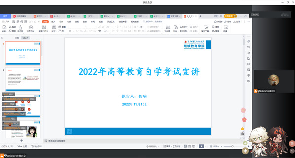杨瑞副教授向同学们解释了何为“高等教育自学考试”,以典型案例分析了其优势,介绍了专本同读对个人今后职业发展、薪酬待遇等方面的影响。详细解读招生专业、教学计划、辅导时间、报名流程、缴费方式、学风建设等方面的具体问题,以“过去已成过往,未来重新进取,专本同读,助你圆梦”鼓励同学们认清形势、树立目标,合理规划未来,充分调动了同学们自考专衔本的积极性,让同学们了解了高等教育自学考试的重要性及提升学历的重要意义。最后,杨瑞副教授与同学们进行互动交流,详尽解答了同学们关于高等教育自学考试的相关问题。