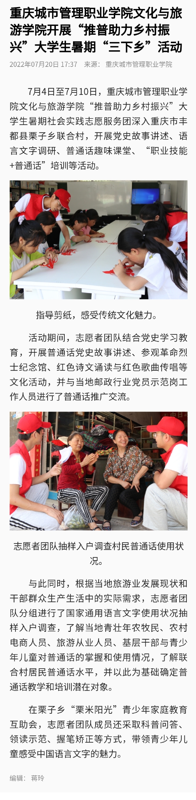 作者:文化与旅游学院审核发布:重庆城市管理职业学院发布者:党委宣传网工部发布时间:2022-07-20浏览次数:64