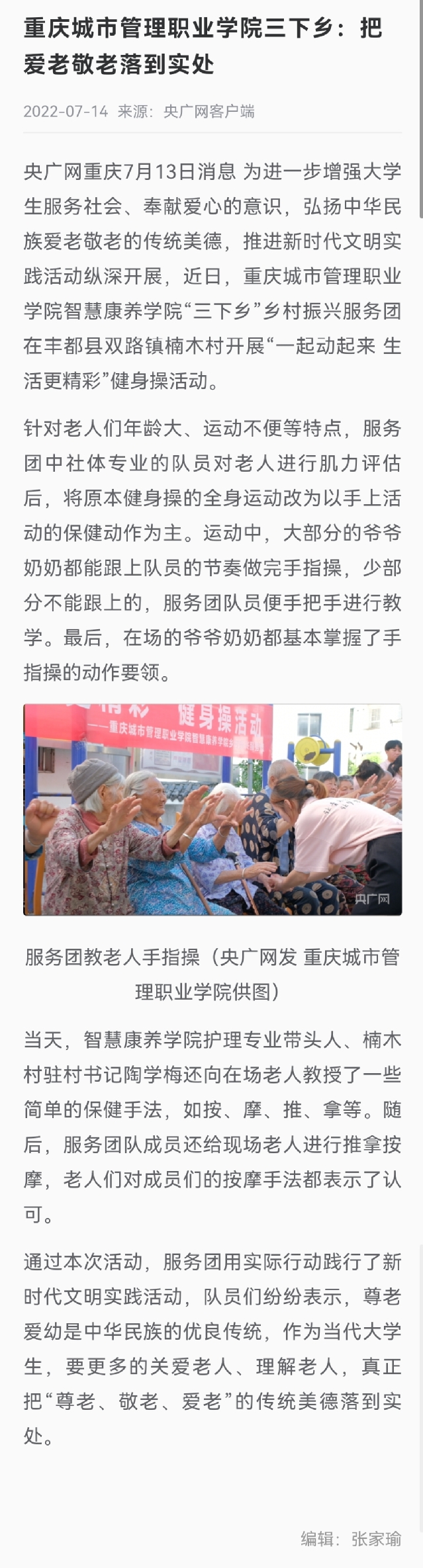 作者:智慧康养学院审核发布:重庆城市管理职业学院发布者:党委宣传网工部发布时间:2022-07-14浏览次数:64