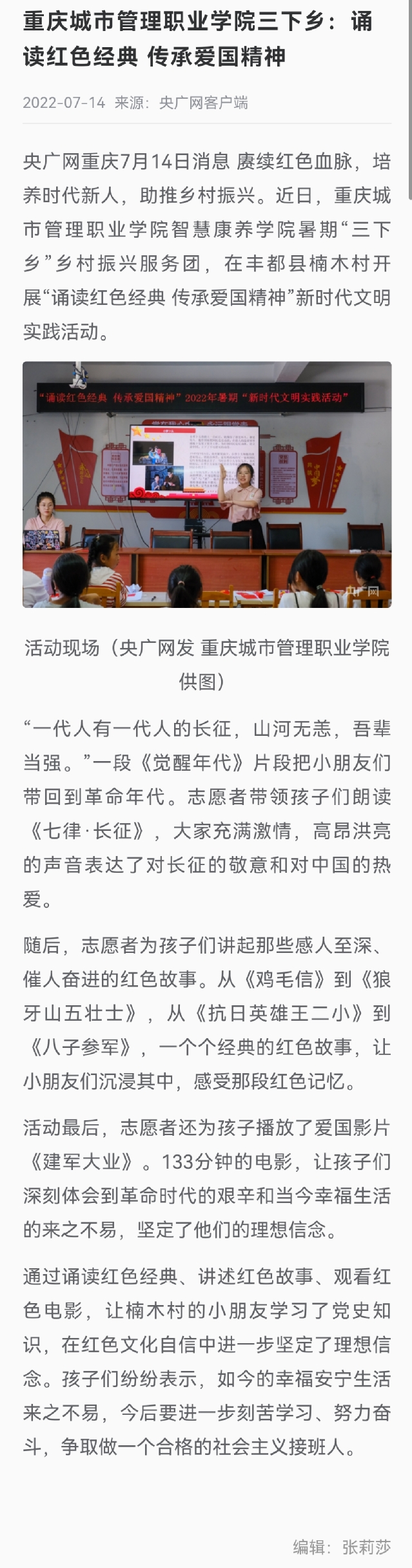 作者:智慧康养学院审核发布:重庆城市管理职业学院发布者:党委宣传网工部发布时间:2022-07-14浏览次数:70
