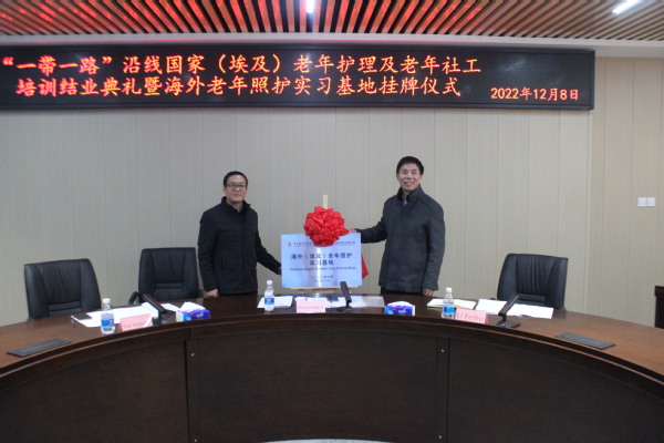 至此,我校与埃及中国大学挂牌成立了海外老年照护实习基地,并与埃及中国大学签订《重庆城市管理职业学院海外老年照护实习基地协议》。为传播中国传统养老文化,有效促进我校在埃及大学老年服务领域的国际影响力,进一步推进老年社工与护理培训项目、继续深化养老服务人才的联合培养,推进我校在国际化养老服务领域中探索的教学方法、教学标准、教学内容等教学改革成果推广,充分促进中国养老文化在“一带一路”沿线国家可持续发展推进我校养老服务与教育在埃及的布局奠定了坚实的基础。