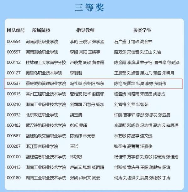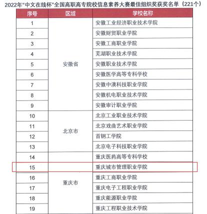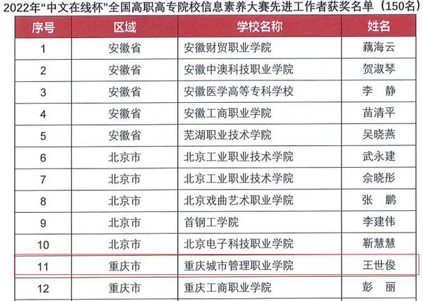 近日,2022年“中文在线杯”全国高职高专院校信息素养大赛落下帷幕。在其中的原文传递赛项中,由图书馆冯礼益、余冬阳和文化与旅游学院张东老师指导的陈艳、杨国坤、邹昊、李婷、贺鹏伟学生团队获全国赛三等奖,王世俊老师获“先进工作者”荣誉称号。同时,我校获最佳组织奖。