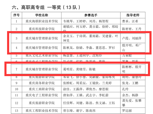 近日,由重庆市教育委员会主办,重庆师范大学承办的2022年重庆市大学生旅行线路创意策划设计大赛决赛落下帷幕。经组委会组织专家评审,在52所学校的437支参赛队伍中(本科组308支队伍和高职高专组129支队伍),本科组评出一等奖31个、二等奖60个、三等奖91个、优秀指导教师32名、优秀组织奖10个;高职高专组评出一等奖13个、二等奖26个、三等奖39个、优秀指导教师22名、优秀组织奖6个。经过多轮激烈角逐,我校旅游管理专业推出的三个项目斩获3项一等奖。一等奖数量位列全市高职院校第一,并实现了我校在该项大赛中的历史性突破。一等奖的指导老师全部获得“优秀指导老师”称号,同时,我校被授予“优秀组织奖”单位。