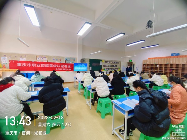 2月18-19日,我校恢复线下职业技能评价工作,赴高新区首创幼儿园和重庆工贸高级技工学校开展育婴员四级职业技能评价工作,共180余人参加考试。