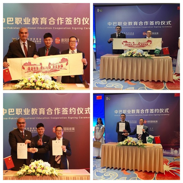 为响应习近平主席向世界职业技术教育发展大会所致贺信中关于“中国积极推动职业教育高质量发展,支持中外职业教育交流合作”的指示,服务“一带一路”倡议和中巴经济走廊建设,助力国际产能合作,学校与巴基斯坦旁遮普省及信德省职教局达成合作协议。国际合作与交流中心主任孙玉中教授在合作签约仪式上代表学校与巴基斯坦旁遮普省和信德省职教局分别签署了合作框架协议并相互交换纪念品。下一步学校将进一步探索中巴职业人才培养、专业标准输出、国际化课程资源开发、师生交流、中文+职业技能培训、合作基地等项目,深入推动学校与巴基斯坦职业教育领域的合作。