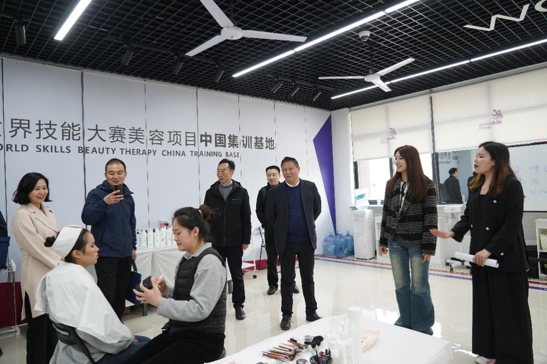 许志鹏一行参观了重庆市智慧康复养老工程技术研究中心、智慧物流全流程产教融合实训基地、世界技能大赛美容项目集训基地等,听取各研究中心、实训基地负责人介绍运作模式、建设情况及高技能人才培养情况等。