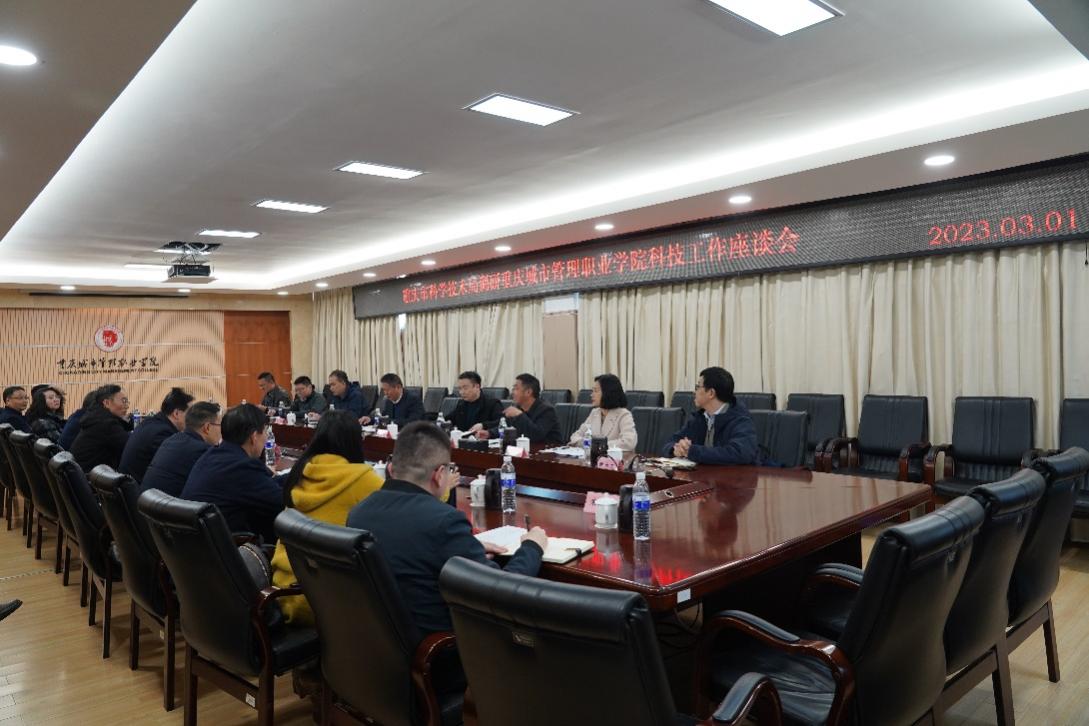 3月1日,重庆市科学技术局党委委员、副局长许志鹏一行到我校指导科技工作。学校党委书记邹晓波,党委副书记、校长邓明国,副校长莫堃,科研与发展规划处、各二级学院负责人,以及科研人员代表参加调研座谈。