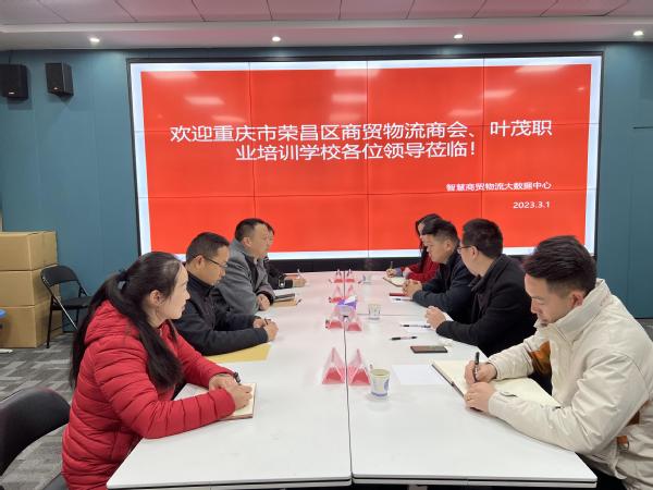 3月1日,荣昌区商贸物流商会副会长、叶茂职业培训学校校长叶锡一行到我校实践教学中心F102洽谈合作事宜。我校商学院副院长邱云及相关专业教师代表参加此次交流。