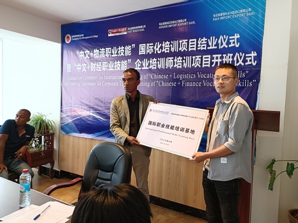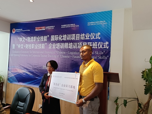 随后,牟艳红副院长为“中文+物流职业技能”国际化培训学员颁发了结业证书,黄菊英院长为20名来自马达加斯加FAST RIDER公司的学员颁发了境外兼职教师聘书,他们将作为企业培训师参与到接下来我校与马达加斯加开展的各类培训项目当中。
