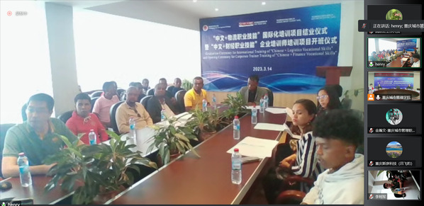 3月14日,我校举行马达加斯加“中文+物流职业技能”国际化培训项目结业仪式暨“中文+财经职业技能”企业培训师培训项目开班仪式。重庆市教育委员会国际合作与交流处处长李斌,马达加斯加旅游部塔娜大区总监安卓·哈维罗、旅游部合作顾问倪瑞娜、旅游部合作顾问弗拉文,FAST RIDER有限公司总经理李利军,我校数智财经学院学院副院长黄菊英、商学院副院长牟艳红、培训项目负责人以及来自马达加斯加300余名参训学员出席了仪式。仪式由我校国际合作与交流中心主任孙玉中主持。