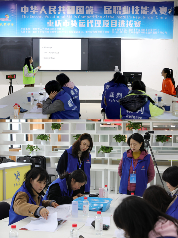 3月27-28日,由重庆市人力资源和社会保障局主办的中华人民共和国第二届职业技能大赛重庆市货运代理项目选拔赛在我校顺利承办。共有来自重庆市工业职业技术学院等12所高职院校的21名选手参加。赛前,学校教务处副处长郎永祥组织召开说明会,货运代理项目基地负责人邱云介绍项目选拔基本情况,裁判长牟艳红对竞赛规则做特别说明、答疑,并组织裁判培训,明确执裁规则及职责范围。