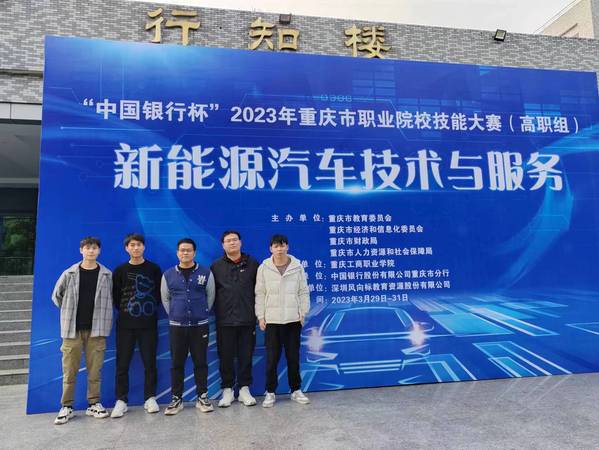 3月29日,由重庆市教育委员会、重庆市经济和信息化委员会、重庆市财政局、重庆市人力资源和社会保障局共同主办,重庆工商职业学院承办的“中国银行杯”2023年重庆市职业院校技能大赛高职组“新能源汽车技术与服务”赛项在合川顺利举行。全市共有20余所职业院校38支队伍参加此赛项,我校共组织2支学生队伍参加比赛。