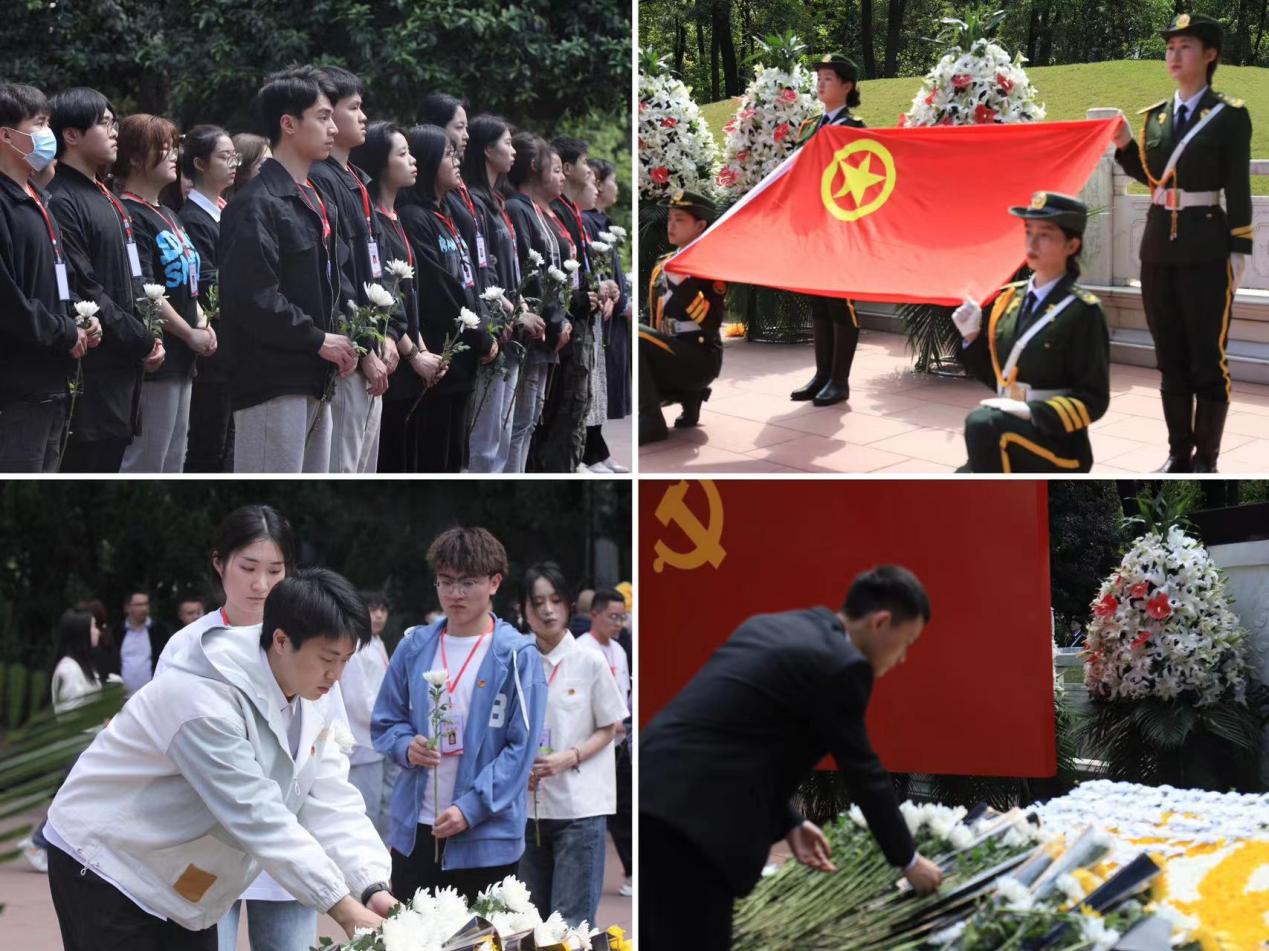 全体人员来到红岩魂广场,祭奠长眠于此的革命先烈。在革命烈士纪念碑前,国旗护卫队队向烈士们敬献花圈随后,共青团员在革命烈士墓前重温入团誓词。大家依次献敬鲜花,鞠躬默哀,表达无限沉痛的哀思。