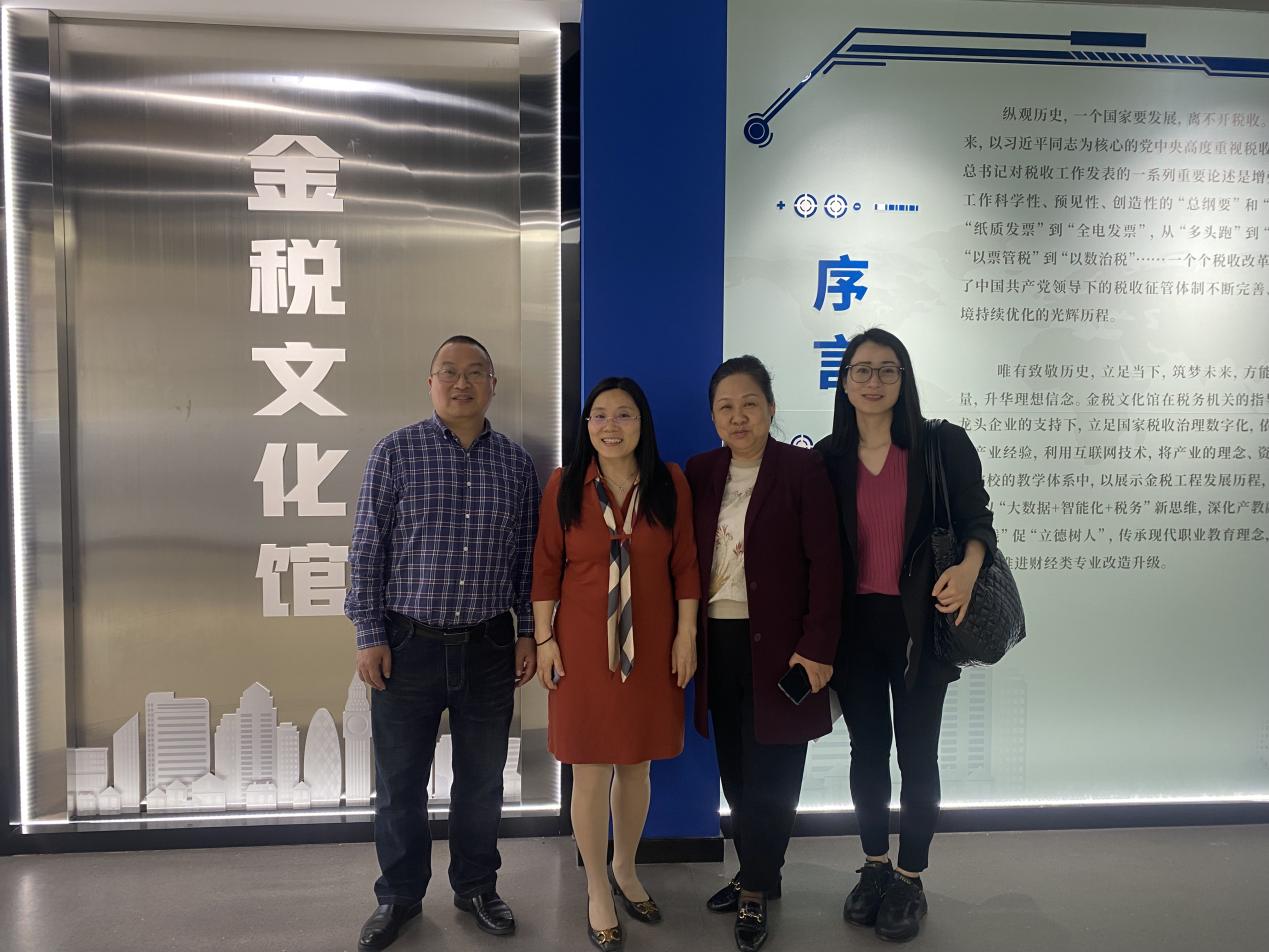 在参观数智财经学院金税文化馆时,黄菊英介绍,近年来,学院在重视学生理论知识架构搭建的同时,强化学生实践能力培养,积极开展校企合作,积极推进协同人才培养模式。数智财经学院同航天信息股份有限公司、重庆航天信息有限公司的合作不断加深,实现企业和院校的互通发展,以产业带领教学实践,以教学促进企业发展变革,产教融合迈出了坚实的一步。接下来,数智财经学院将与航天信息股份有限公司、重庆市高新区政务中心在校内共建政务大厅,面向社会公众提供服务。