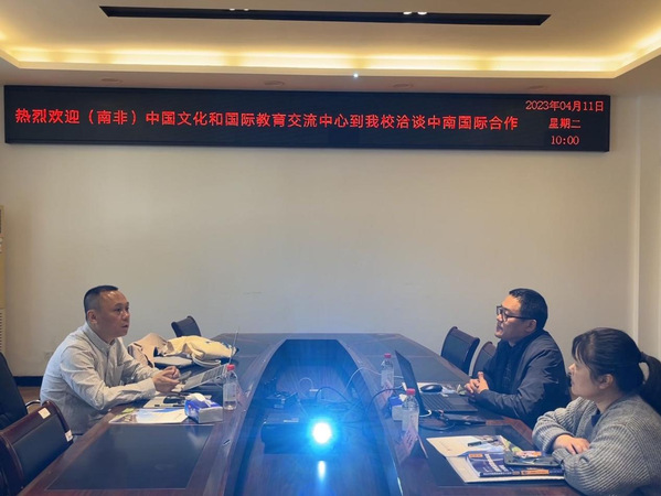 4月11日,(南非)中国文化和国际教育交流中心项目总监王震宇先生到我校洽谈中南国际合作。国际合作与交流中心主任孙玉中、通识教育学院副教授邓春梅参加了本次会议。