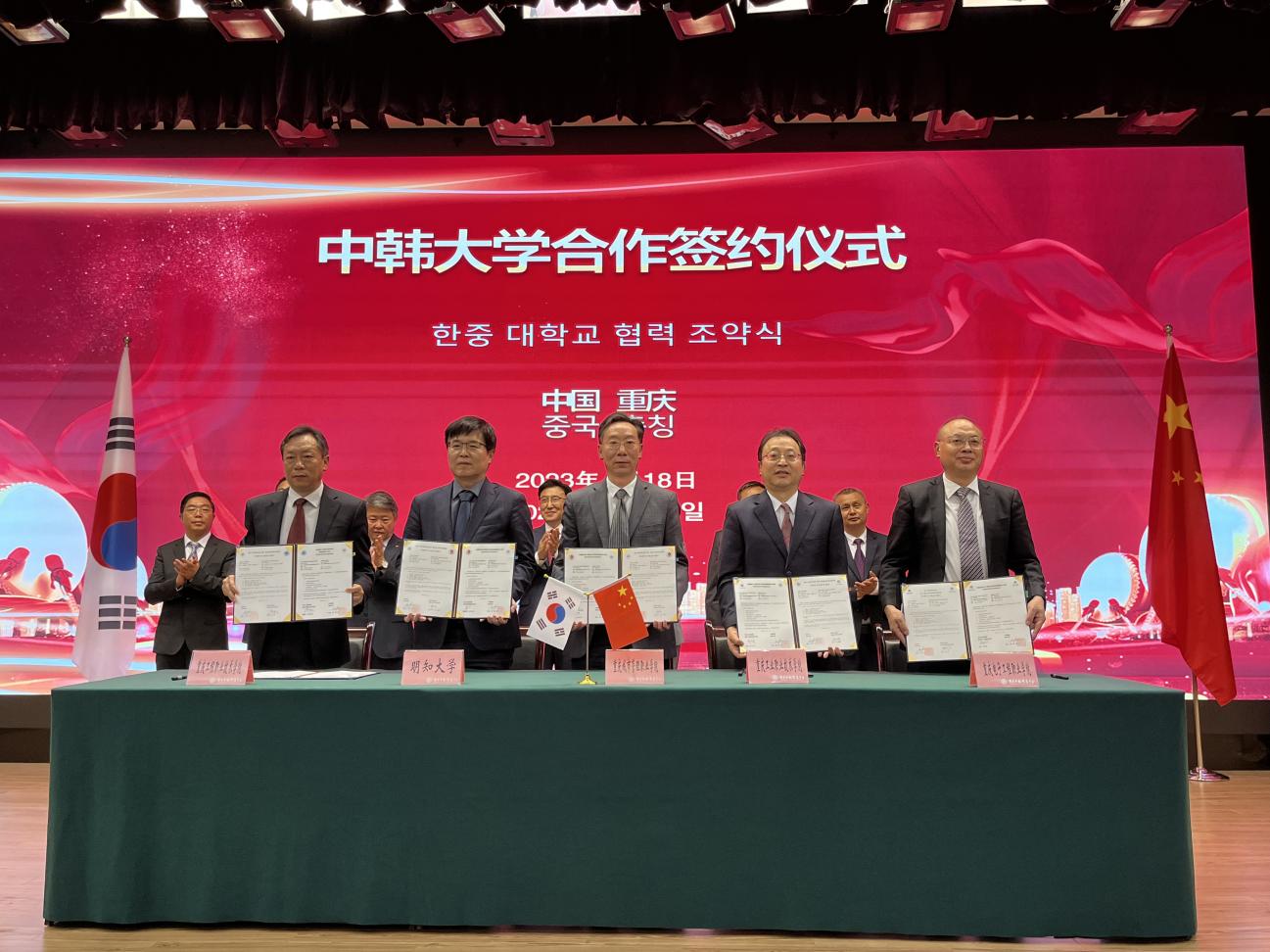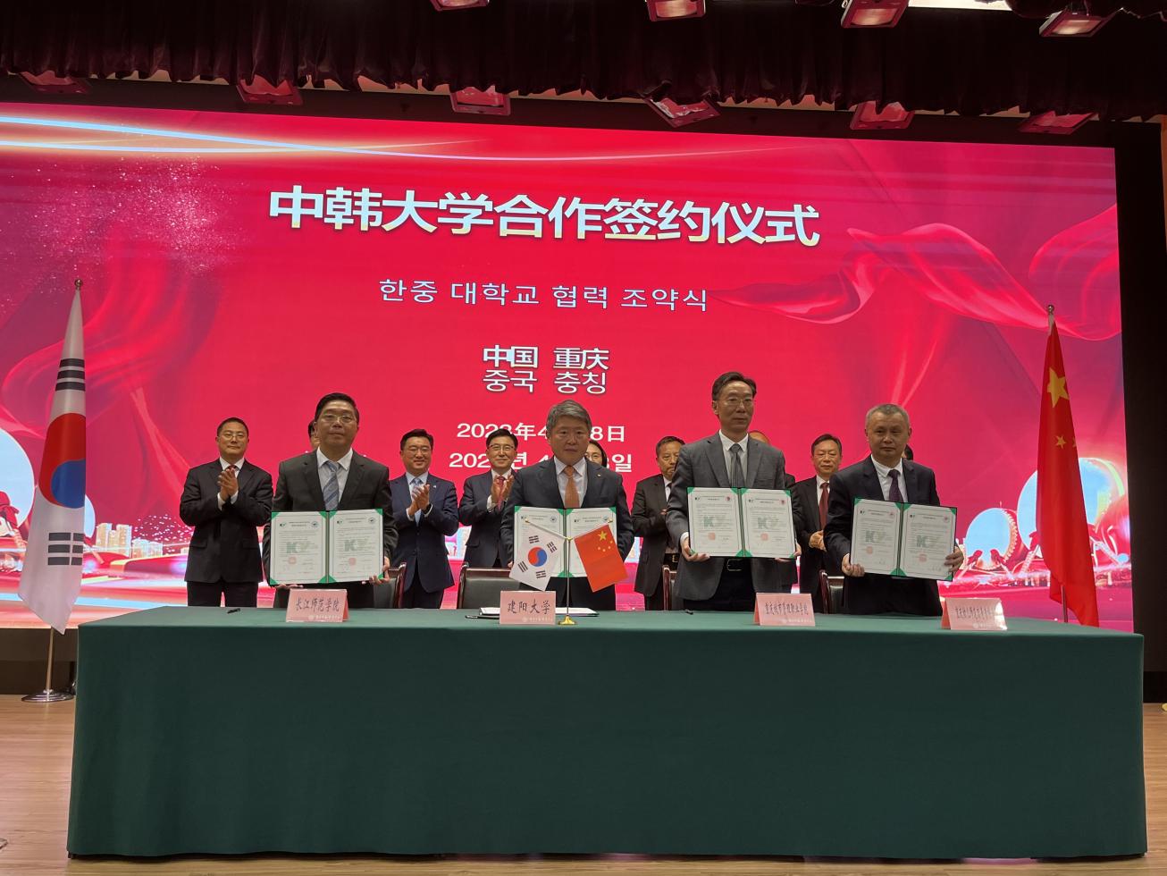 据悉,当天上午,我校党委书记邹晓波以及国际合作与交流处人员应邀前往重庆市教委参加中韩大学合作签约仪式,并与韩国建阳大学、明知大学签署了校际交流协议书。