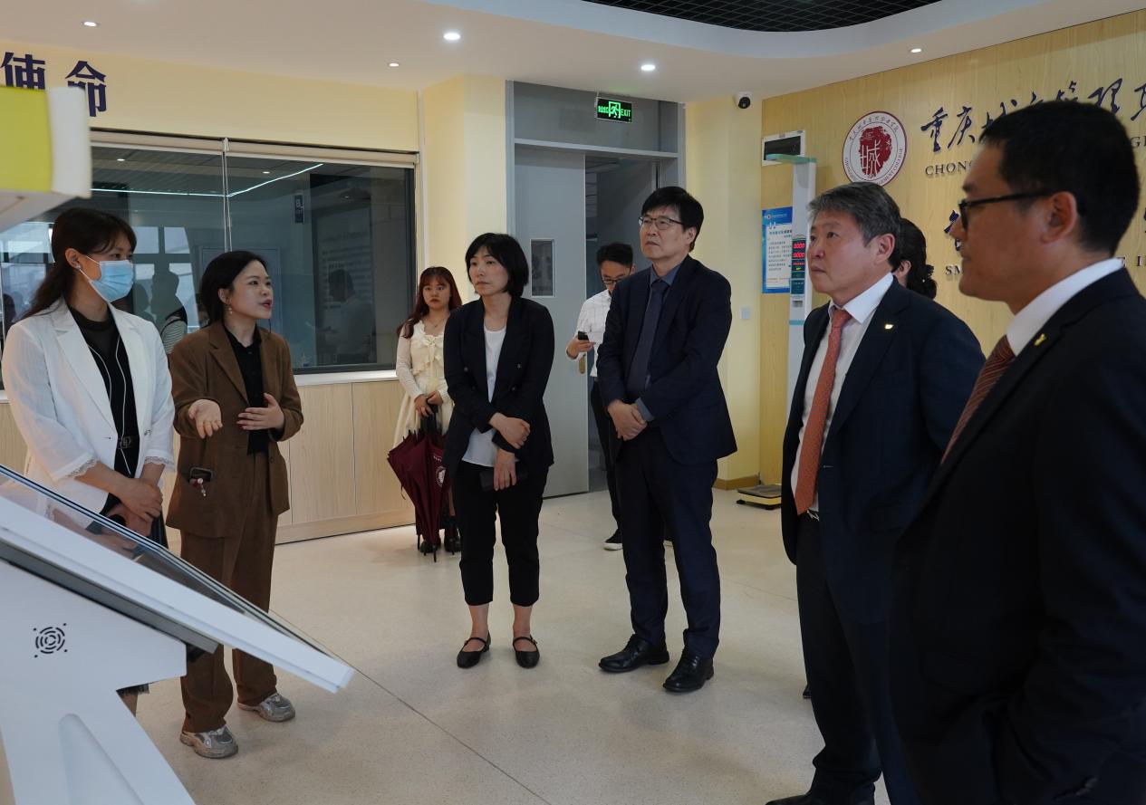 首先,韩方代表团先后参观了学校重庆市养老产业人才培养公共实训基地、世界技能大赛美容项目中国集训基地、汽车实训中心、信息与网络实训基地、智慧物流全流程产教融合实训基地,实地深入了解了学校专业建设、实习实训、产教融合以及国际化人才培养方面的成功经验和成绩。通过参观,韩方代表团表示学校职业教育设施设备先进,理念创新,发展前景广阔,具有开展多方面国际合作交流的坚实基础。