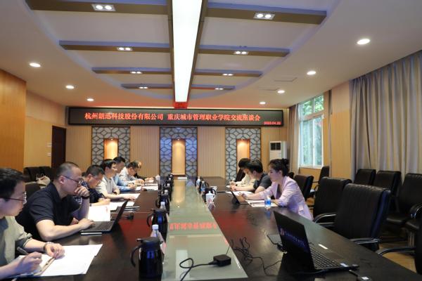 4月22日,杭州朗迅科技股份有限公司董事长徐振、首席战略官黄庆红一行莅临我校交流。学校校长邓明国、副校长袁国、产教融合中心主任江柯、智能工程学院院长彭勇、副院长吕坤颐及相关人员参加会议,会议由副校长袁国主持。