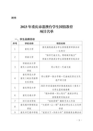 近日,根据《重庆市教育委员会关于公布2023年重庆市港澳台学生国情教育项目名单的通知》(渝教外发〔2023〕2号),我校马克思主义学院副院长张媛艺申报的“‘大爱牵·山一’港澳台学生社工文化研学营”成功获批2023年重庆市港澳台学生国情教育项目,该项目是重庆市高职院校中唯一获批的学生品牌活动。
