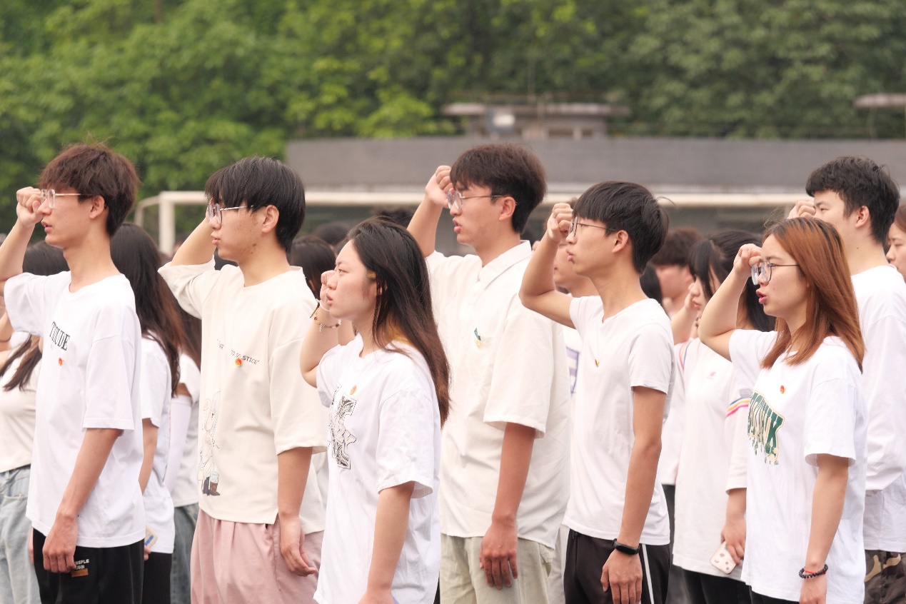 最后,全体师生在领誓人的带领下重温入团誓词。