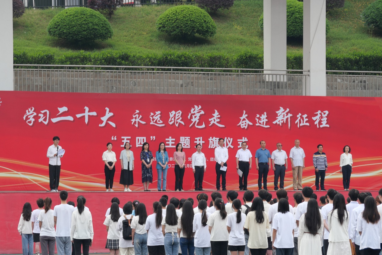 为深入开展学习贯彻习近平新时代中国特色社会主义思想主题教育,深入学习贯彻党的二十大精神,引导青年学生继承和发扬“五四”精神,5月4日,我校在运动场举行“学习二十大 永远跟党走 奋进新征程”五四主题升旗仪式。我校党委书记邹晓波,党委委员、副校长周毅,学校相关职能部门负责人,各二级学院党总支书记、副书记,各二级学院团总支书记、辅导员代表以及团员青年代表等1000余人参加本次“五四”主题升旗仪式。