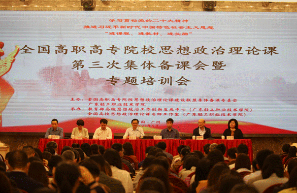 为深入学习贯彻党的二十大精神,切实抓好习近平新时代中国特色社会主义思想“进课堂、进教材、进头脑”工作,5月12日至13日,由全国高职高专院校思想政治理论课建设联盟集体备课专委会主办的全国高职高专思政治课第三次集体备课会暨专题培训会在广州举行。我校党委委员、党委宣传部部长、马克思主义学院党总支书记喻永均作为集体备课组组长应邀参会,马克思主义学院思想政治理论实践教研室主任曹楠作交流发言。