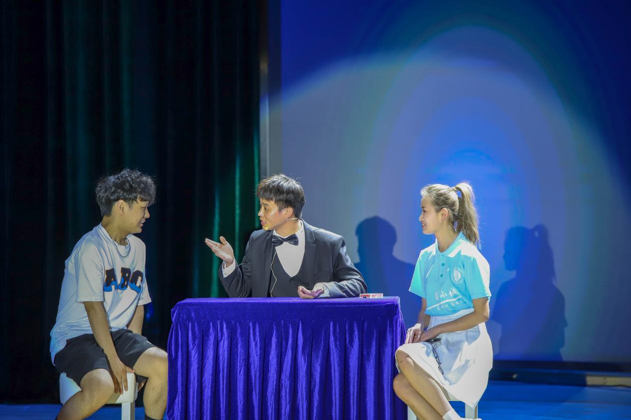 接下来庆市文艺志愿者协会副主席、市杂技艺术家协会副主席杨俊携各位优秀艺术家联袂为同学们带来了一场杂技魔术文化艺术盛宴。