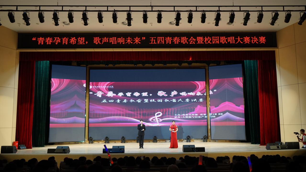 4月27日,由学校党委宣传部、党委学工部、团委主办,大数据与信息产业学院承办的“青春孕育希望,歌声唱响未来”五四青春歌会暨校园歌唱大赛决赛在新综合楼多功能厅举行。校团委全体人员,各二级学院团总支书记、辅导员,以及15组参赛选手、600余名学生观众参加了本次活动。