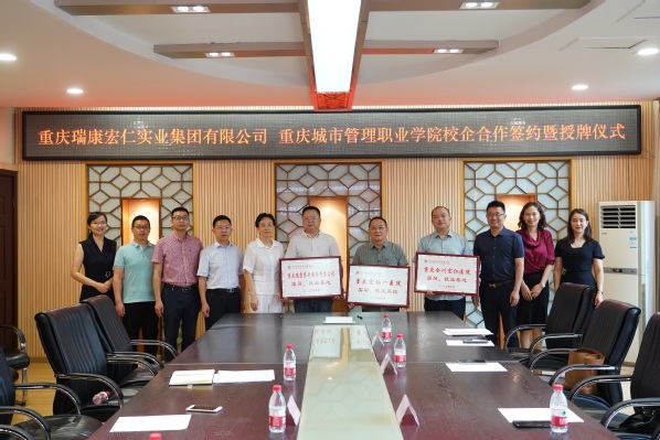 5月30日,我校与重庆瑞康宏仁实业集团有限公司校企合作签约仪式以及系列合作基地共建授牌仪式在办公楼402会议室举行。学校副校长罗小秋,重庆瑞康宏仁实业集团有限公司董事兼CEO贺其根、瑞康宏仁实业集团副总兼德康养老总经理李国强、南川宏仁三院执行院长陈健、合川宏仁医院院长胡冶凌、瑞康宏仁实业集团行政人事部经理殷冬枝出席仪式。签约仪式由智慧康养学院田奇恒院长主持。