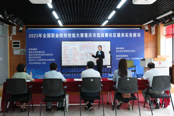 6月5-6日,由重庆市教育委员会、重庆市经济和信息化委员会、重庆市财政局、重庆市人力资源和社会保障局主办,我校承办的2023 年全国职业院校技能大赛重庆市选拔赛高职组社区服务实务赛项在我校TPRI社区治理实训中心举行,全市11所高职院校的11名选手参赛。