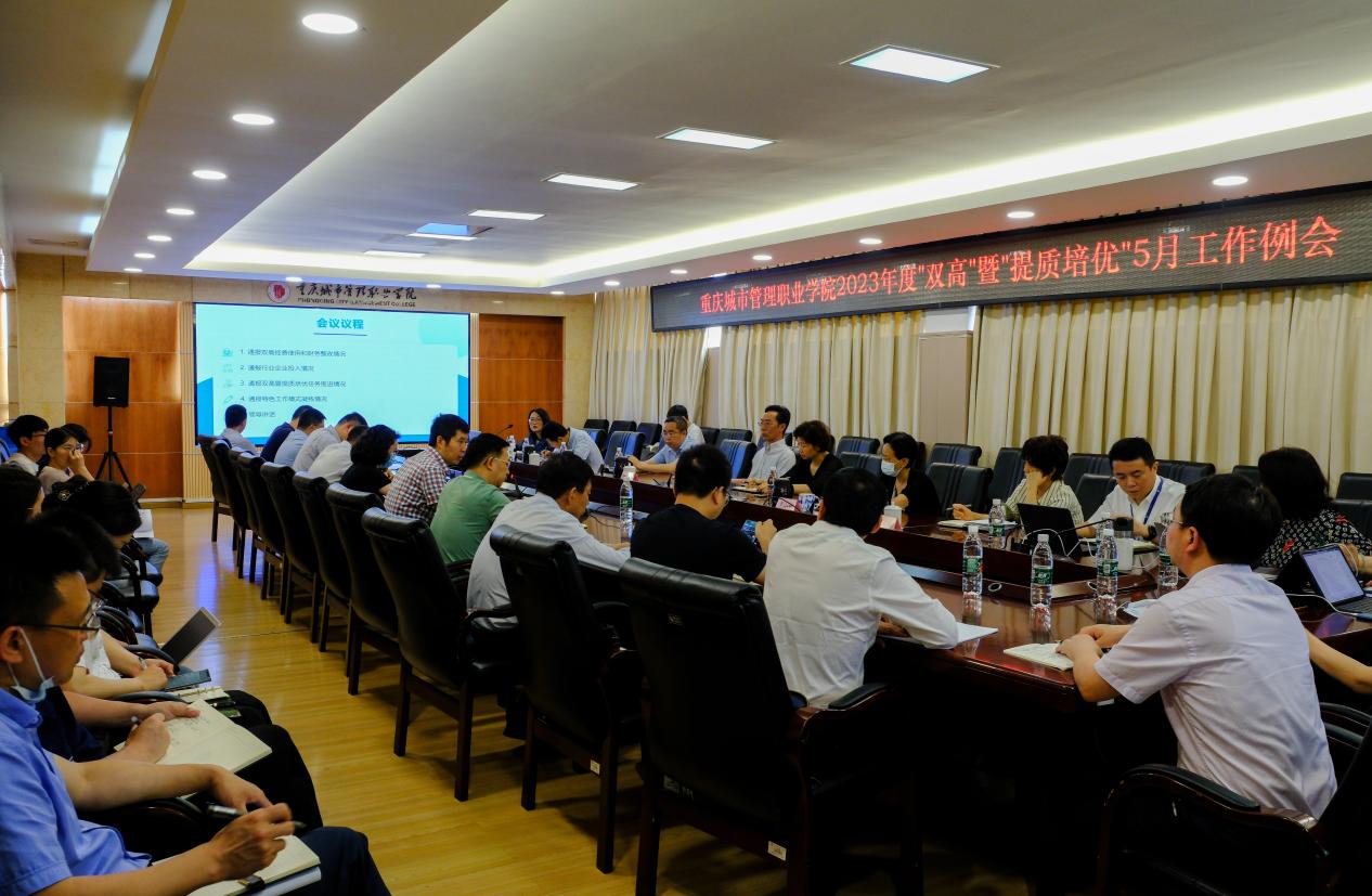 黄蘋传达了川陕渝高职院校“双高计划”建设研讨会等会议精神,通报了“双高”暨“提质培优”1-4月任务完成情况、标志性成果获取情况,解读了《重庆市教育委员会关于公布重庆市高水平高职学校和专业群1-4月标志性成果数量的通知》文件,并对下一步工作作出了安排和部署。