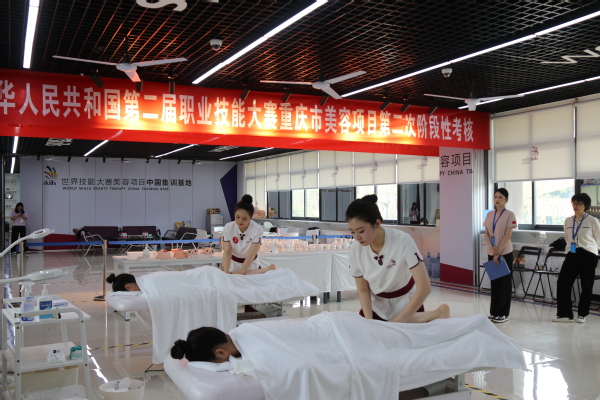 本次阶段性考核将最终确定一名选手参加今年9月在天津举办的中华人民共和国第二届职业技能大赛美容项目比赛。我校文化与旅游学院学生覃慧沉着应战,获得第一名,并代表重庆市参加全国比赛。距大赛开幕仅剩2个月,在最后冲刺阶段,教练团队将继续严格要求和高效训练,共同努力,力争实现重庆选手在国赛赛场上的四连冠目标。