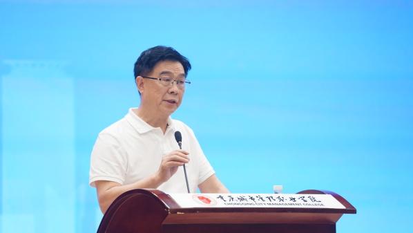 受学校党委书记邹晓波、校长邓明国委托,袁国在大会上致欢迎辞。他代表学校向出席大会的领导和来宾表示热烈欢迎,向长期以来关心和支持学校发展的各界朋友表示衷心的感谢。他说,近年来,学校深入学习贯彻党的二十大精神和习近平总书记关于职业教育的重要指示批示精神,不断强化内涵建设、提升办学实力,取得了丰硕的办学成果。学校将认真着眼服务成渝地区双城经济圈建设,不断优化调整专业布局,改革创新人才培养模式,深化产教融合、校企合作,进一步提升人才培养适应性和学校核心竞争力,为我市职业教育高质量发展作出应有贡献。