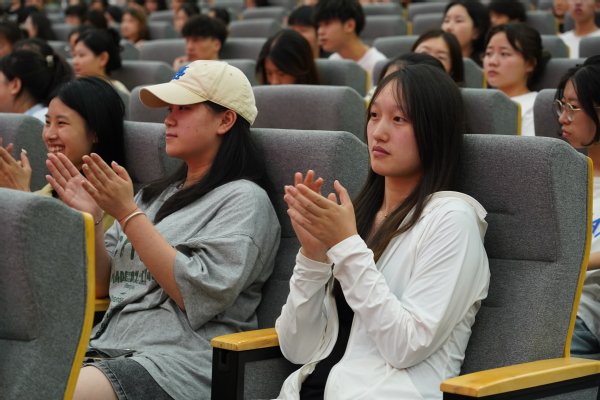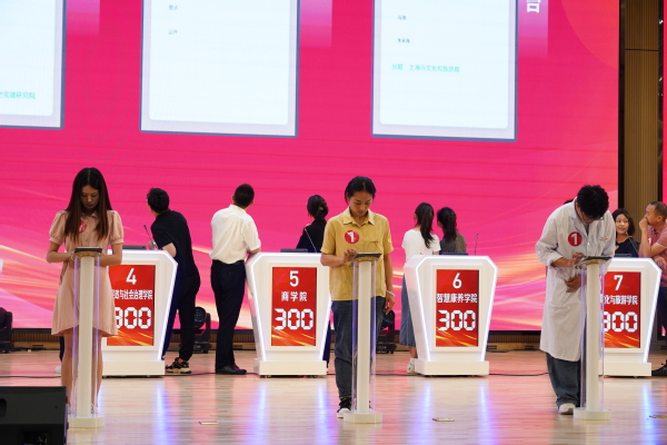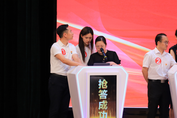 赛场上,师生团队同台比拼,各团队团结协作,比功底、比心态、比手速,全力参与、激情演讲,充分展示日常积累的学习成果。尤其是在“习声回响”抢答题环节,在听完音频内容后,场上各参赛队凭借手中纸笔,记录关键词语,依靠日常所听所看所学所悟,迅速抢答,场上各参赛队争分夺秒、激烈角逐,排名也在不断更新,现场气氛热烈,赢得了观众们阵阵掌声,进一步激发了在场师生的竞技意识和学习热情。