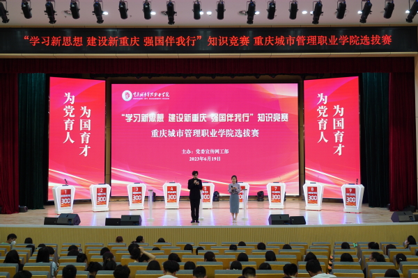 “推进职普融通、产教融合、科教融汇,源源不断培养高素质.......”“要在全社会大力弘扬追求真理、勇攀高峰的......”6月19日,“学习强国”重庆学习平台“学习新思想 建设新重庆 强国伴我行”校内选拔赛在学校综合楼多功能厅举行,来自9个二级学院代表队的27名参赛选手现场角逐,展现了当代青年过硬的理论素养和丰富的知识储备。
