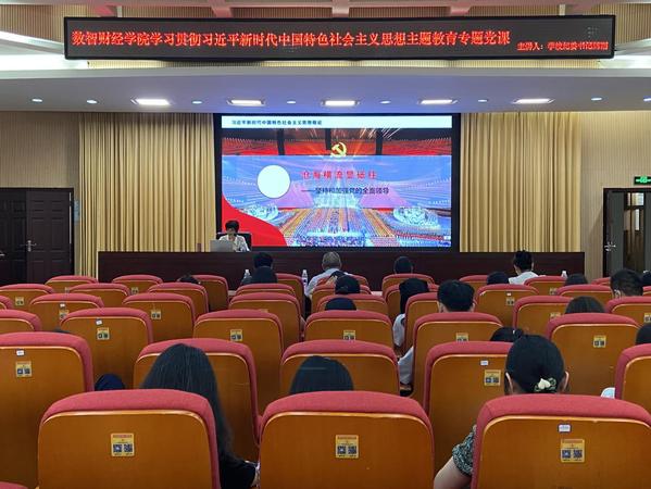 为深入学习贯彻习近平新时代中国特色社会主义思想主题教育,6月27日,学校纪委书记、监察专员陈丽在办公楼103会议室以“沧海横流显砥柱——坚持和加强党的全面领导”为题,讲授专题党课,数智财经学院和纪检监察室全体成员参加,学院党总支书记蒋家宁主持。