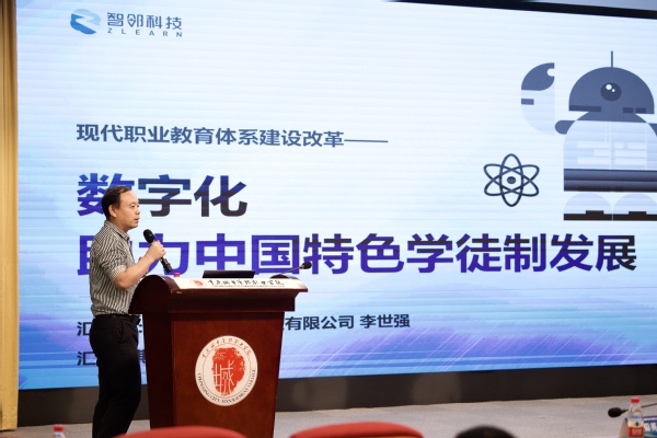 最后,广东省职业院校现代学徒制工作指导委员会委员、智邻产教融合发展研究院院长、深圳市智邻科技有限公司总经理李世强作了题为《数字化助力中国特色学徒制发展》的主题报告,他从学徒制的现状,学徒制工作内容解读,借助数字化手段、实现学徒制实施过程中的创新,数字化实践等四个方面进行了交流,提出标准体系建设、教学资源建设、培养模式改革、管理体制建设,分享了中国特色学徒制在数字化领域的应用。