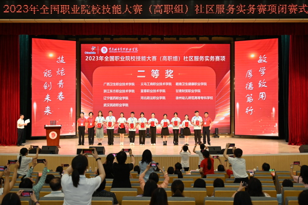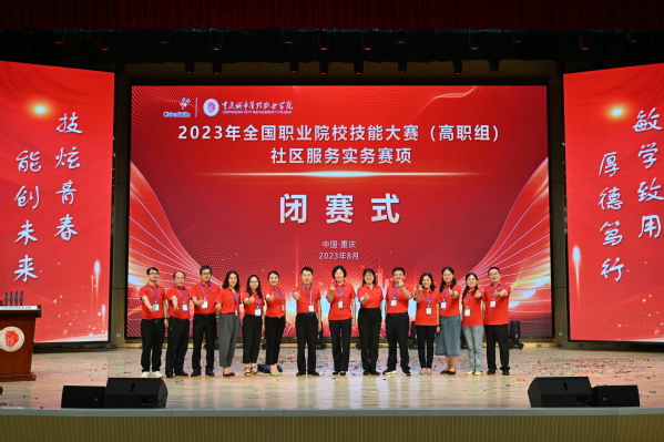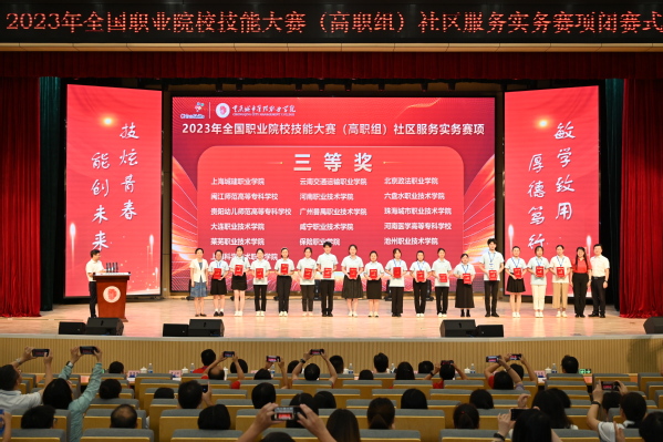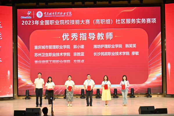 8月29日晚,2023年全国职业院校技能大赛高职组社区服务实务赛项在重庆城市管理职业学院闭赛。经过2天激烈角逐,最终,重庆城市管理职业学院、潍坊护理职业学院等5所高职院校参赛团队获一等奖,广西卫生职业技术学院、义乌工商职业技术学院等10所高职院校参赛团队获二等奖,上海城建职业学院、云南交通运输职业学院等16所高职院校参赛团队获三等奖。此外,大赛还评选出了重庆城市管理职业学院郭小建等5位优秀指导教师。